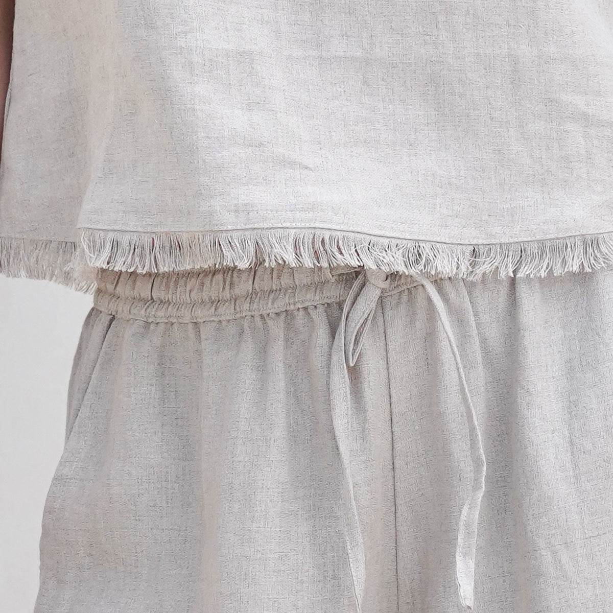 100% French linen fabric is a premium choice for clothing, offering a soft, breathable texture that keeps you cool and comfortable in warm weather. Its natural, elegant drape enhances the fit of garments, making it perfect for stylish, relaxed silhouettes that exude effortless sophistication.